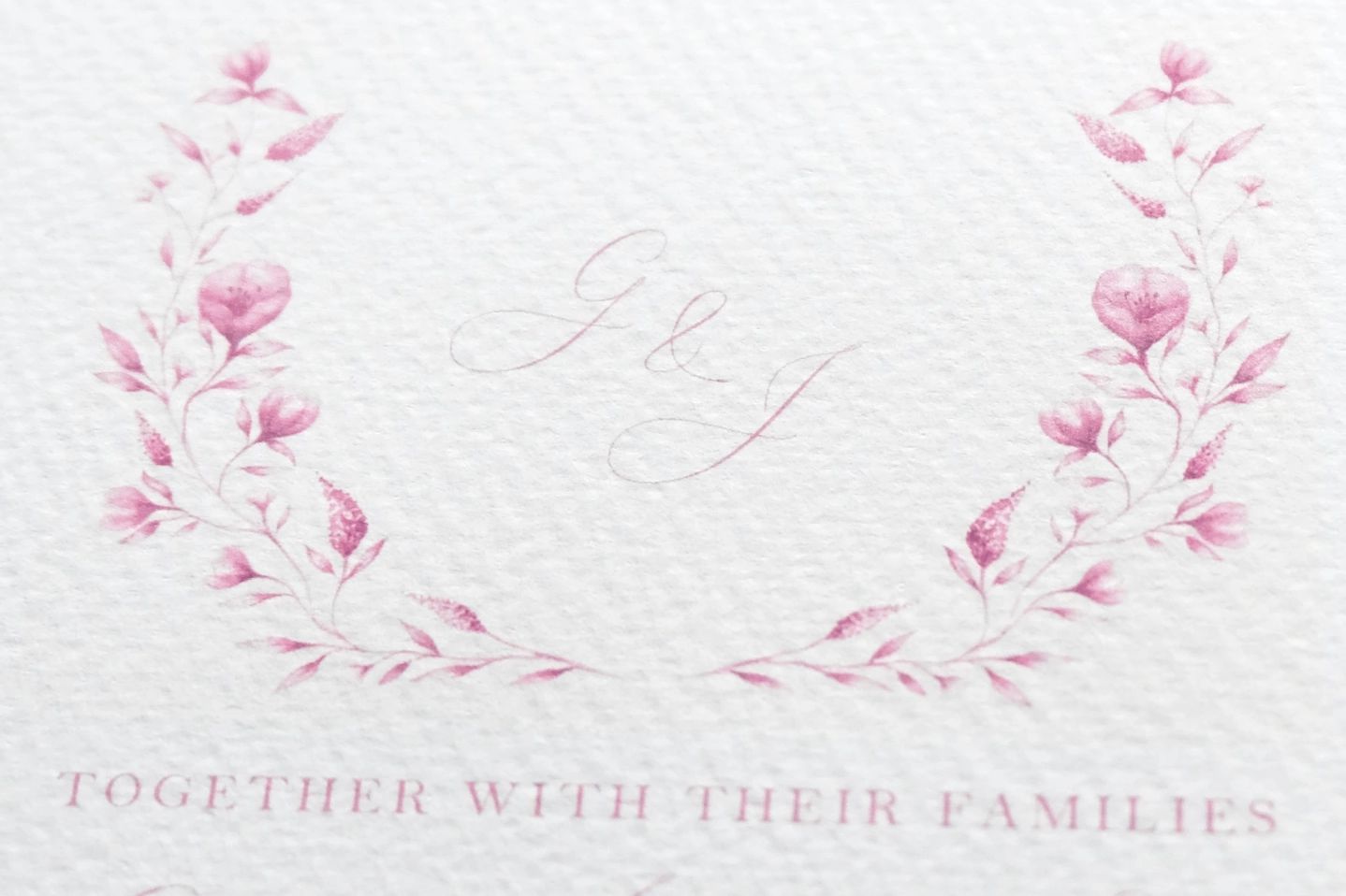 The Grace Suite is a highly detailed watercolour invitation suite with intricate flowers in a timeless design.